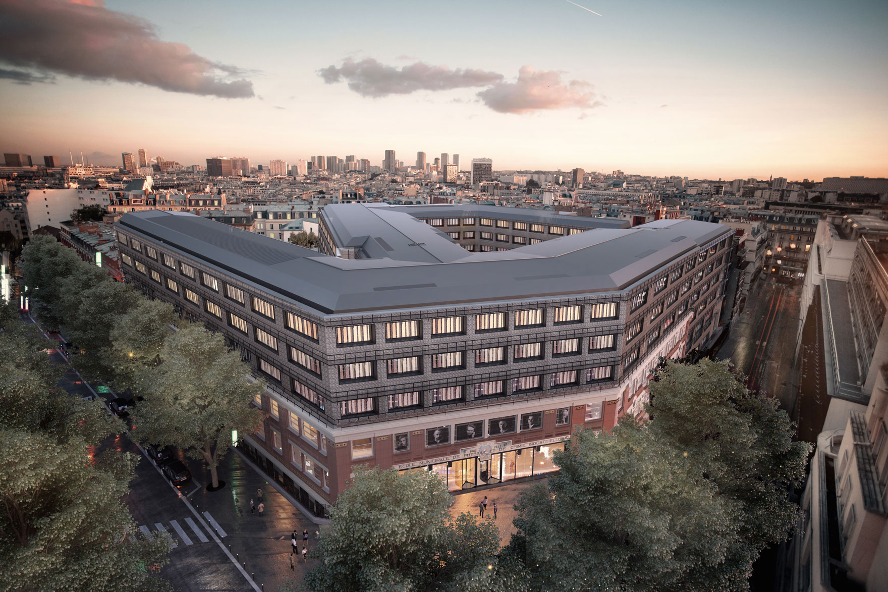 Anne Démians : L’ensemble de mes projets traitent de cette nécessité absolue de penser la construction comme une occasion de reconstruire la ville sur elle-même et ainsi contribuer à ce que la densité urbaine devienne acceptable et désirable pour l’ensemble de ses habitants. Les Dunes sont un bâtiment-paysage que j’ai réalisé pour la Société Générale à Val de Fontenay à la place de bâtiments de logistique urbaine. L’opération de logement que j’ai construite sur les anciennes voies ferrées situées porte d’Auteuil avec les architectes Francis Soler, Finn Geipel et Rudy Ricciotti, constitue un manifeste sans écart entre logement privé et logement social. L’École des 6 Nobels à Paris, l’ESPCI, sera un véritable connecteur des savoirs scientifiques. Je le réalise en lieu et place de bâtiments hétéroclites et construits au fil du temps que je restructure pour assurer une nouvelle capacité à répondre aux évolutions des besoins de la recherche française au plus haut niveau.
