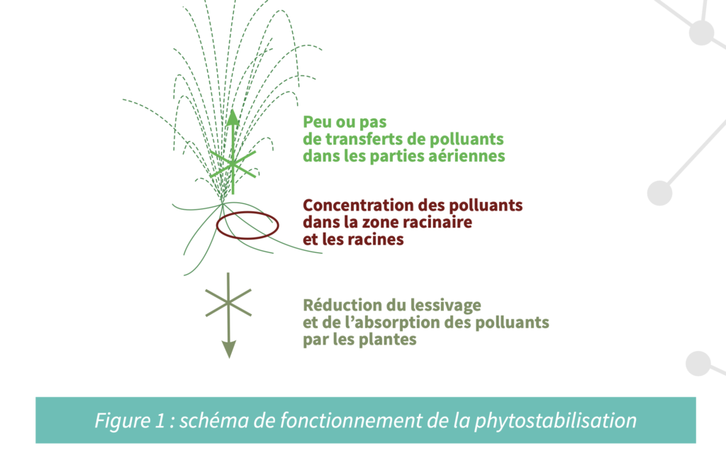 Autre propriété de certaines plantes : la fixation des polluants dans les racines. Dans ce cas de figure, il s’agit de la phytostabilisation. « Ici, la mobilité des polluants est réduite. Ils se fixent dans les racines des espèces végétales et ne se propagent pas dans les feuilles et les graines », relate Frédéric Bary. Dans un rapport dédié aux phytotechnologies appliquées aux sites et sols pollués (2017), l’ADEME précise toutefois que la phytostabilisation n’est pas « une technique de dépollution », mais « un mode de gestion destiné à stabiliser les éléments traces du sol », comme les métaux (zinc, cadmium) et les métalloïdes (arsenic).