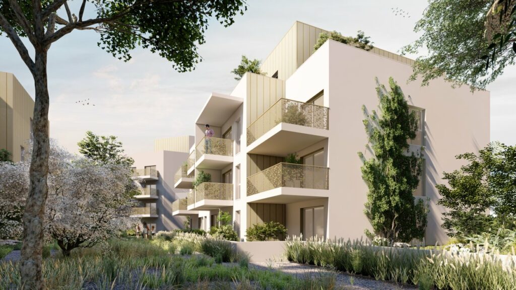 Héliodore Granger : Sphère a été imaginé avant le COVID mais la pandémie a retardé sa commercialisation et son lancement. Il s’agit d’un programme de 63 logements, répartis sur 5 bâtiments à Tassin-la-Demi-Lune, près de Lyon. L’association Odynéo nous a contactés avec un besoin très précis : faire l’acquisition de 4 logements dans cet ensemble pour un projet de co-living.