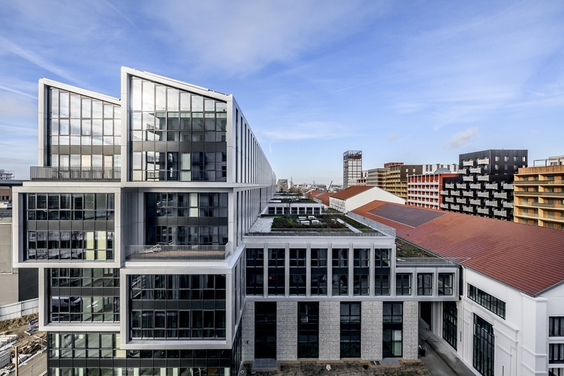 Autre axe fort : le réemploi des matériaux : 10 % des matériaux sont issus du réemploi et 75% des matériaux provisoires installés pour accueillir les athlètes (comme les cloisons) sont réemployés ou recyclés : « Les moquettes de certains espaces par exemple sont issues du réemploi. Elles retrouvent une deuxième vie après avoir été utilisées sur d’autres bâtiments, tout en répondant évidemment aux besoins réglementaires. Mais leur mise en œuvre nécessite des process adaptés. Cette approche implique des démarches supplémentaires et un suivi spécifique, notamment des personnes en charge des travaux. Mais cela crée la fierté des équipes et contribue à la sensibilisation de tous à la préservation des ressources. » Avec toutes ces mesures, Universeine affiche un bilan carbone 40 % inférieur à un projet construit traditionnellement. Le programme abrite aujourd’hui 1 227 logements répartis sur 79 000 m2, accueille 3 500 salariés dans 63 000 m2 de bureaux, propose 4 000 m2 de commerces et locaux d’activités et dispose de 19 000 m2 d’espaces verts.