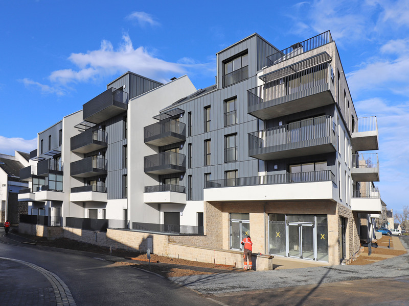 Dans le centre-ville de Plérin (Côtes-d’Armor), les 2 bâtiments du programme An Aod (le rivage, en breton) abritent 50 logements et 2 cellules commerciales, dans un ensemble qui reprend les codes de l’architecture locale et se fondent dans le paysage. Au rez-de-chaussée, la structure béton est recouverte d’un bardage en pierre de Languédias, dont la carrière se situe à moins de 50 km du chantier. « Une ressource localement géo-sourcée, se félicite Denis Paing, directeur de programmes Bretagne. Ce parement devrait aussi assurer une longue conservation dans le temps de son aspect initial ». Dans les étages, plusieurs pans de façade sont recouverts de bardages bois issus de forêts gérées durablement. Un élément indispensable dans ce secteur réglementé par les architectes des bâtiments de France.