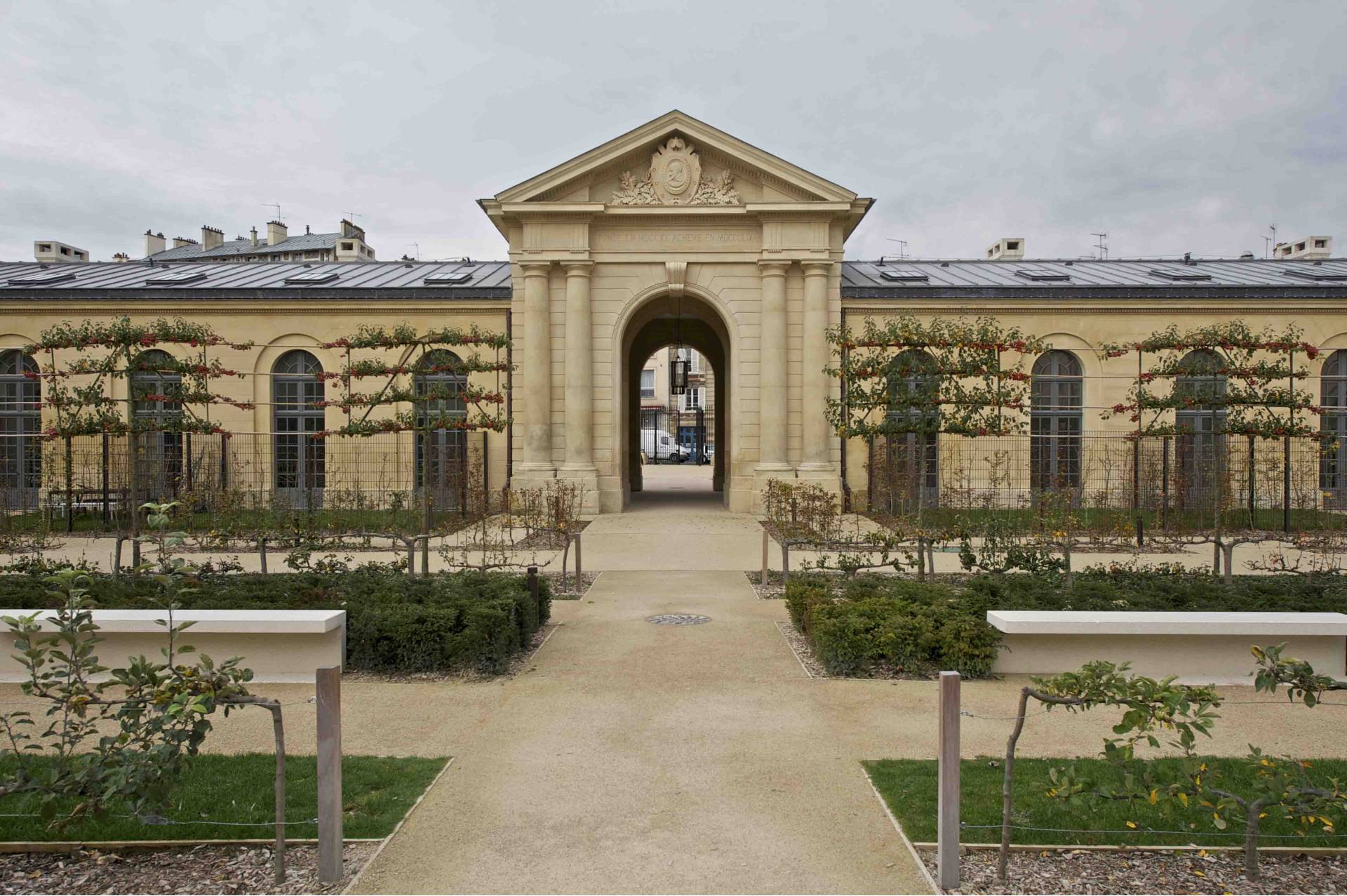 La reconversion de l’ancien hôpital royal de Versailles, une référence![]() (©Frédéric Morel) Parachevée en 2015, la reconversion de l’ancien hôpital royal de Versailles fait encore figure de référence auprès des acteurs de la fabrique de la ville. Désaffecté depuis la fin des années 90, cet édifice prestigieux de 28 000 mètres carrés datant du XVIIIe siècle –qui a pris feu à trois reprises –, a été réhabilité sous le coup de crayon de l’architecte Jean-Michel Wilmotte. « Le maire de Versailles s’est retrouvé avec un bâtiment remarquable sur les bras, mais abandonné par l’État et inopérant pour la santé ou toute autre activité », se remémore Laurent de Malartic, architecte et directeur de projets au sein de l’agence Wilmotte & Associés. Pour ramener de la mixité dans ce quartier versaillais, décision est prise d’associer une offre résidentielle classique à des logements étudiants, une crèche, un espace culturel et des commerces. En accord avec les architectes en chef des monuments historiques de l’agence 2BDM – Frédéric Didier et Christophe Batard –, certaines unités et bâtiments contemporains ont été démolis. « Ces derniers n’étaient pas respectueux de l’architecture versaillaise et de la beauté singulière des édifices historiques du lieu, dont la chapelle », précise Laurent de Malartic. Avec l’appui des paysagistes François Neveux et Bernard Rouyer, trois jardins publics aux identités différentes viennent magnifier cette pièce urbaine qui aura traversé le temps. |