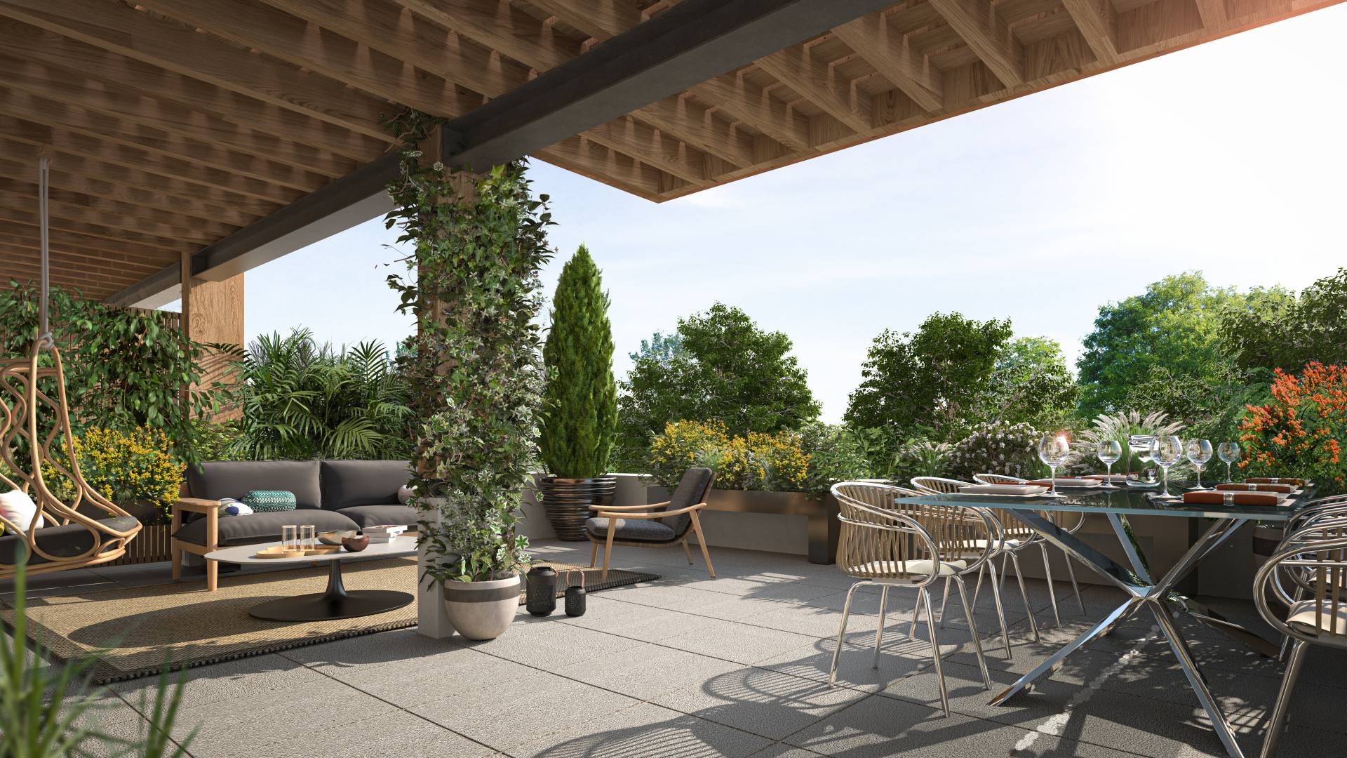 Cette opération de recyclage urbain répond à tous les objectifs de zéro artificialisation nette prévus par la Loi Climat et Résilience, qui prendra effet en 2050 mais que VINCI Immobilier s’est engagé à respecter dès 2030. Côté B s’implante sur une ancienne friche commerciale. De plus, l’artificialisation produite par la nouvelle résidence sera plus que compensée par la végétalisation de la parcelle. Résultat : 9% de désartificialisation ! Pour y parvenir, l’opération prévoit notamment la création de jardins en pleine terre permettant de restaurer les fonctions écologiques du site (écoulement des eaux, rechargement des nappes phréatiques, etc). « Ce travail de recyclage, ajoute Antoine Fourré, directeur du développement pour la région de Bordeaux, s’est accompagné d’un important travail de dépollution : nous avons retiré des cuves sous la dalle du parking, et les sols ont été entièrement traités ». Pour limiter au maximum les émissions de CO2 liées à la construction, tous les matériaux ont été sélectionnés au regard de leur faible bilan carbone. Le projet fera donc appel à de nombreux matériaux biosourcés : les structures ont, pour une grande partie, été conçues en ossature bois, et une partie des cloisons intérieures en terre crue. Au niveau réglementation environnementale, ce sont les dernières normes RE 2025 qui ont été retenues.